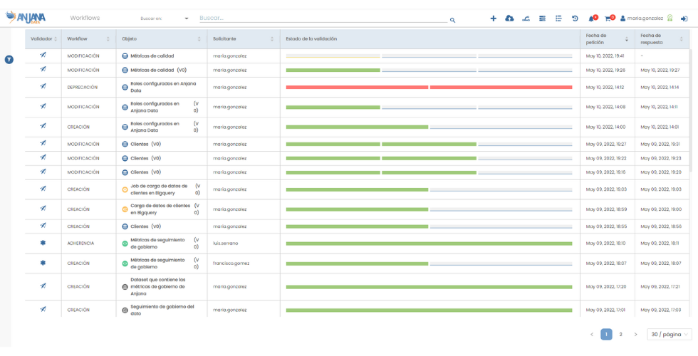 • Flujos de trabajo basados en roles y acciones del metamodelo.