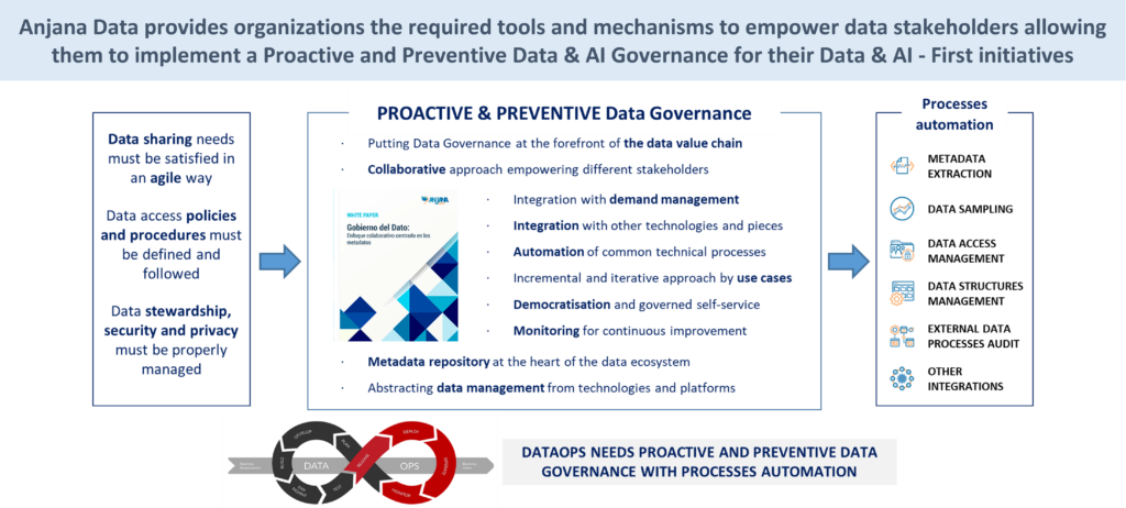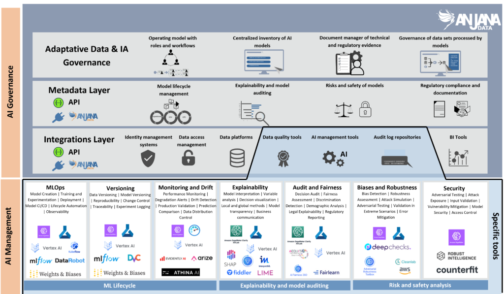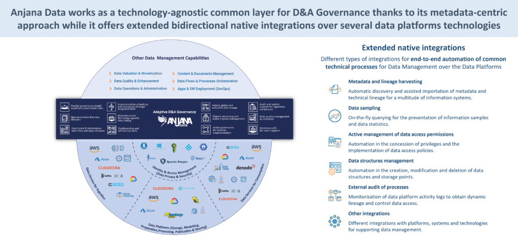 Aquí vuelve a cobrar sentido el mensaje central: Anjana no compite con el gobierno técnico nativo de las Plataformas de Datos & IA. Lo eleva a una capa superior de gobierno integral, transversal, agnóstico y orientado al negocio.