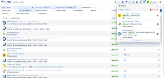 Se vincula formalmente a los datasets aprobados que lo alimentan.