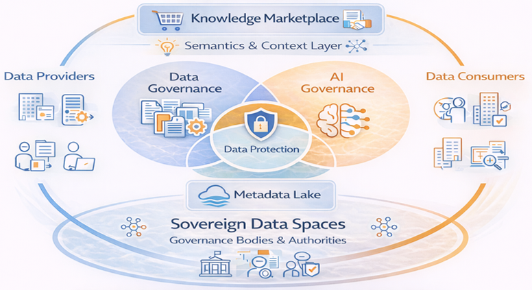 La respuesta no debería ser únicamente cumplir normativa o tener el inventario ordenado. El verdadero objetivo es convertir los datos y la IA en conocimiento reutilizable, compartible y explotable de forma controlada.