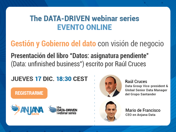 Con motivo del lanzamiento de su libro, Raúl nos acompañará en esta última sesión del año dentro de nuestra iniciativa “The DATA-DRIVEN webinar series” para hablarnos sobre la gestión y gobierno del dato con visión de negocio y nos compartirá, además, su experiencia en la implementación del Single Data Marketplace.