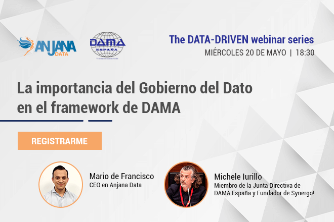Para este tercer webinar de la serie “The DATA-DRIVEN webinar series” de Anjana Data contaremos con Michele Iurillo, miembro de la Junta Directiva de DAMA España y Fundador de Synergo!, quien nos hablará sobre la metodología de DAMA la cual sigue siendo el mejor fundamento para un profesional que quiera centrar su conocimiento en los activos informativos. Además, Mario de Francisco, CEO en Anjana Data, nos compartirá algunos aspectos más profundos del Gobierno del dato dentro de este marco referente en todo el mundo.