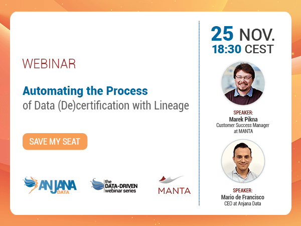 Únete a este webinar con Marek Pikna, Customer Success Manager en MANTA y Mario de Francisco, CEO de Anjana Data para: